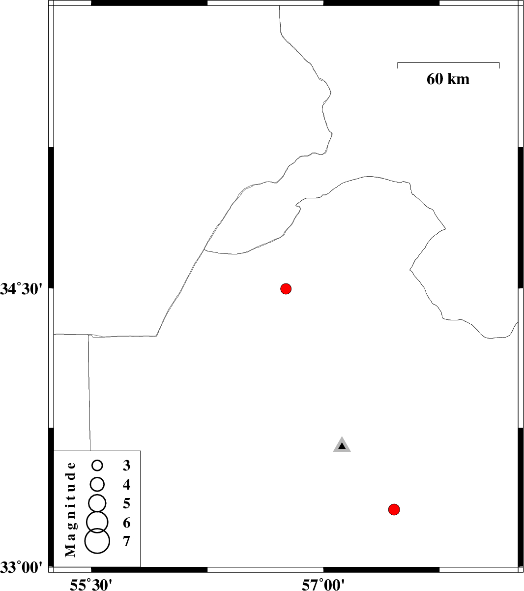 | 2023/12/18 | 02:23:38.9 | 05:53:38.9 | 34.496 | 56.757 | 12 | ML:3.1 | Yazd Province, 101 km North-West of Tabas | ||
