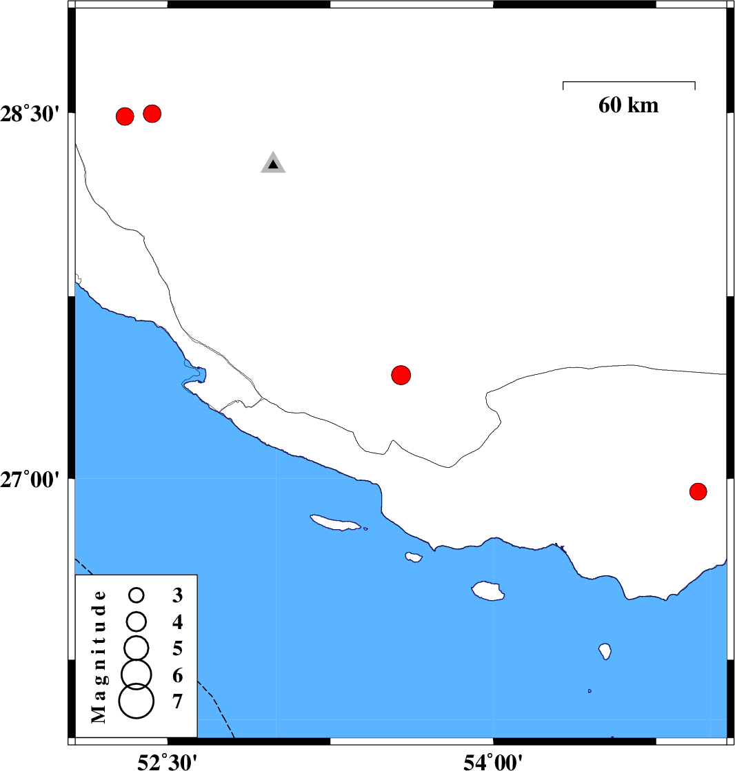 | 2023/12/21 | 08:20:52.9 | 11:50:52.9 | 27.426 | 53.575 | 16 | ML:4 | Fars Province, 42 km -East of Lamerd | ||