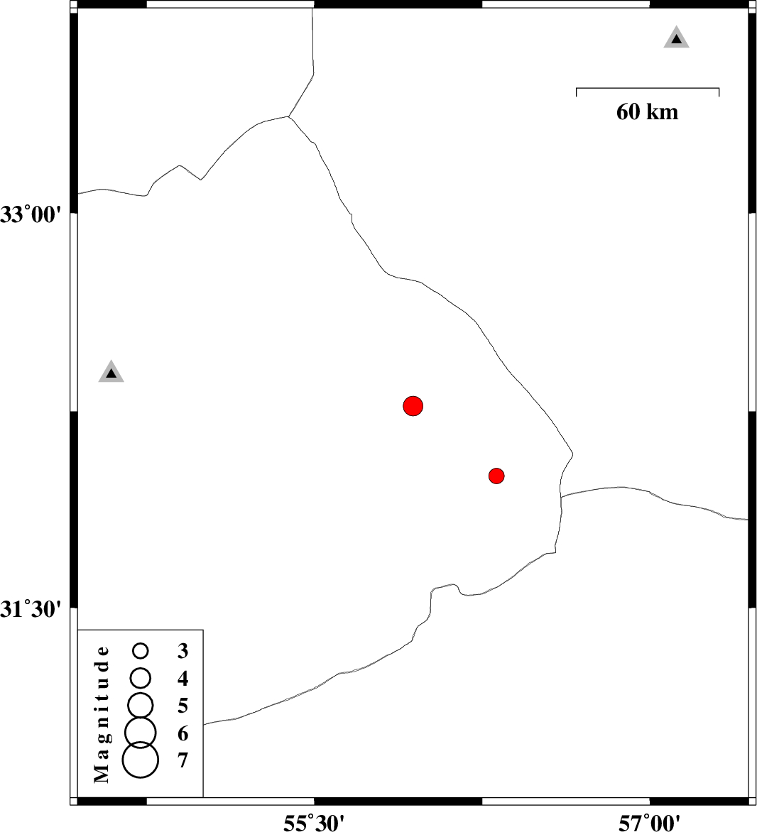 | 2023/11/26 | 10:30:22.0 | 14:00:22.0 | 32.004 | 56.314 | 12 | ML:3.1 | Yazd Province, 95 km North-West of Ravar |