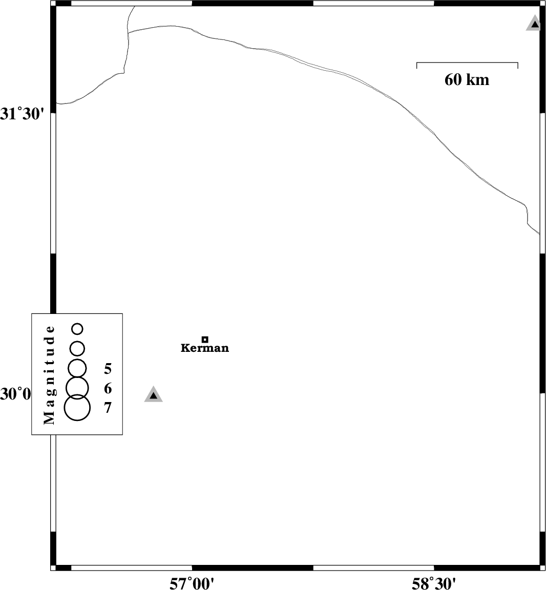 | 2023/12/23 | 16:37:57.9 | 20:07:57.9 | 30.567 | 57.655 | 10 | ML:3 | Kerman Province, 63 km North-East of Kerman |