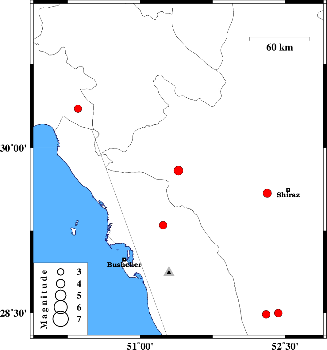 | 2023/12/18 | 12:17:28.7 | 15:47:28.7 | 29.589 | 52.316 | 10 | ML:3.9 | Fars Province, 21 km -West of Shiraz | ||