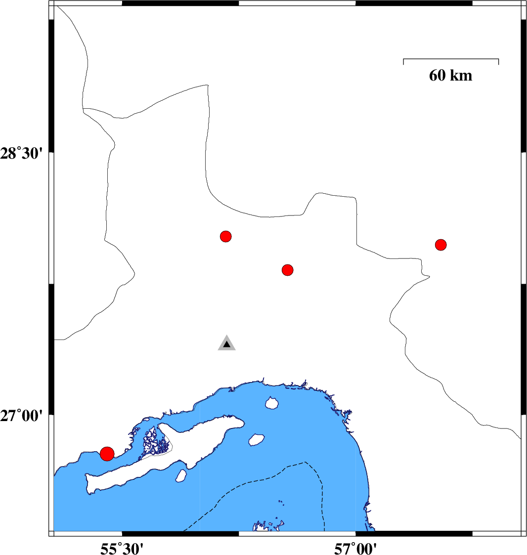 | 2023/12/28 | 04:25:35.6 | 07:55:35.6 | 27.828 | 56.562 | 12 | ML:3.3 | Hormozgan Province, 77 km North-East of Bandar-e abbas | ||