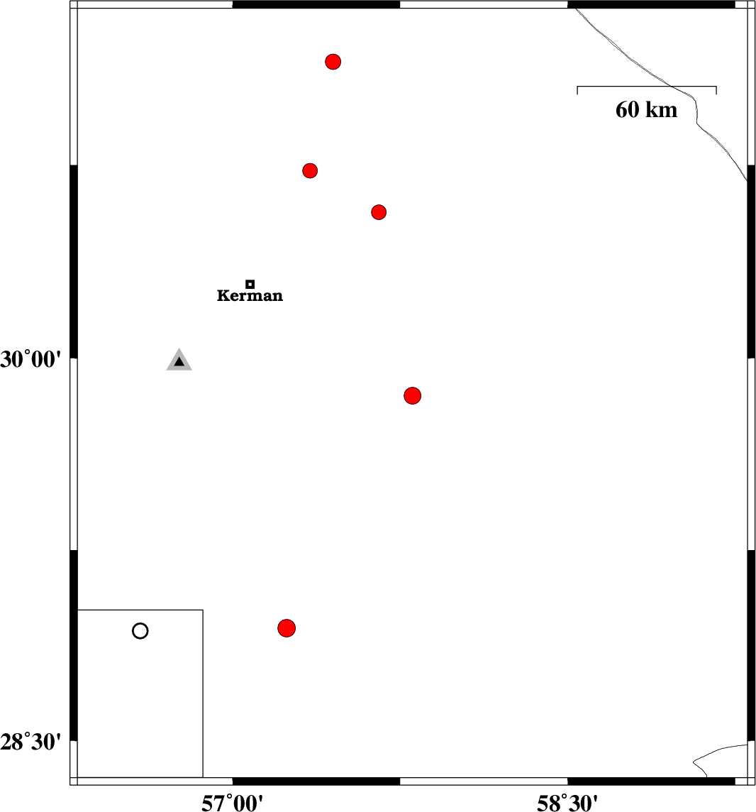| 2023/12/30 | 08:20:46.6 | 11:50:46.6 | 28.943 | 57.242 | 12 | ML:3.5 | Kerman Province, 57 km North-West of Jiroft | ||