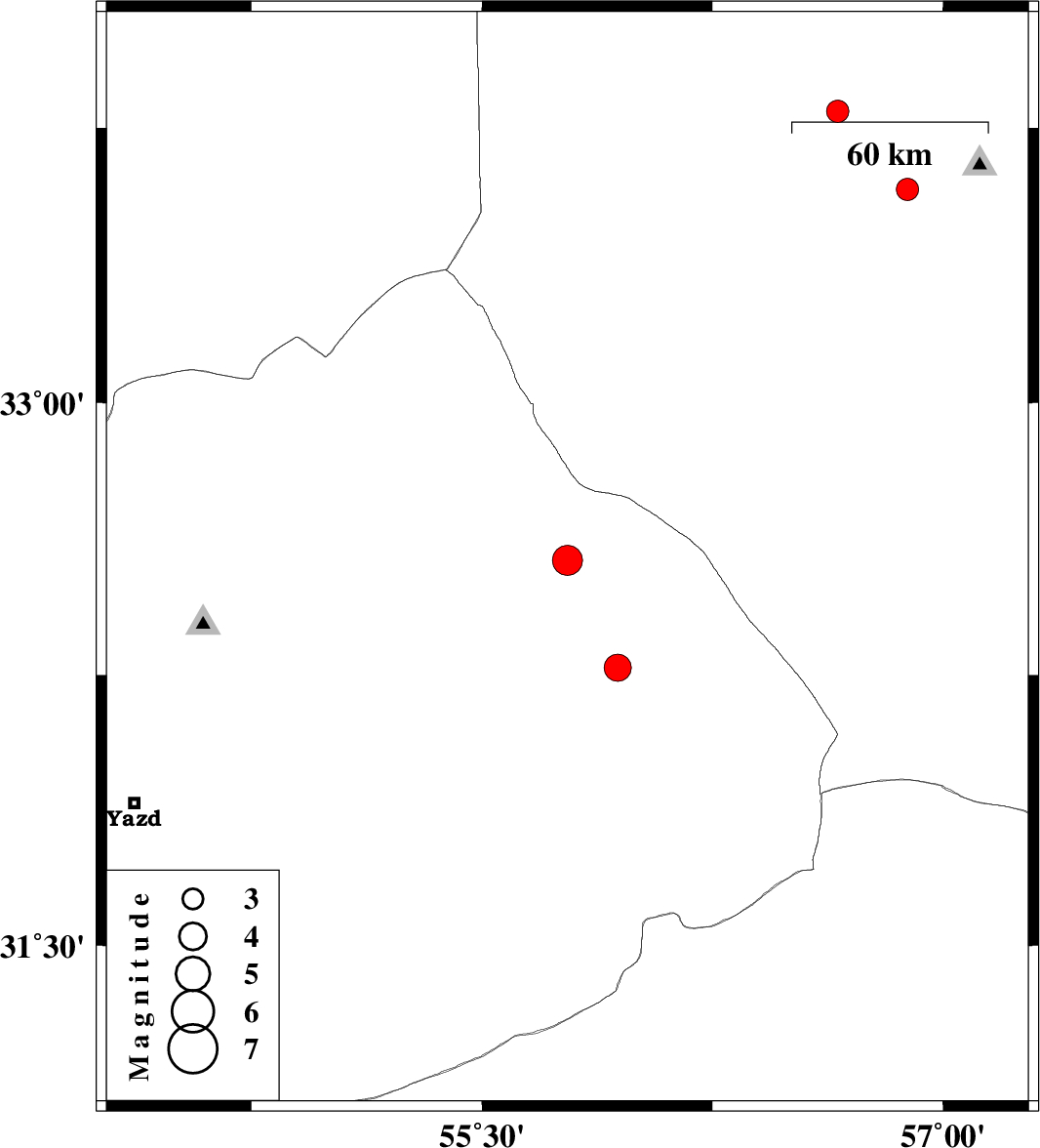 | 2023/12/23 | 11:04:35.3 | 14:34:35.3 | 32.27 | 55.941 | 12 | ML:3.9 | Yazd Province, 90 km North-East of Bafq |
