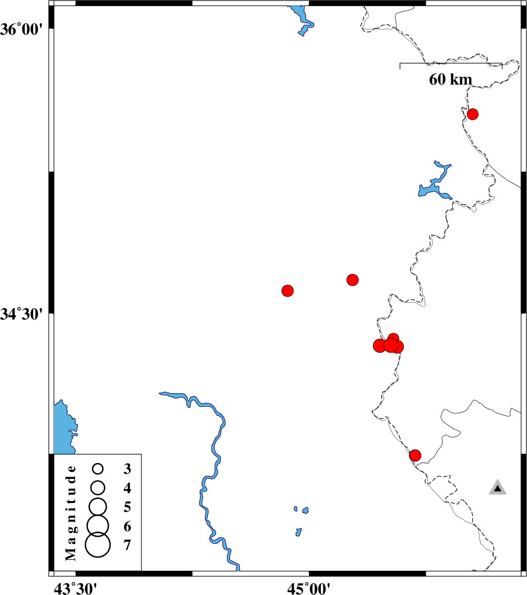 | 2021/03/16 | 00:30:50.1 | 04:00:50.1 | 34.619 | 44.861 | 12 | ML:3.4 | Iraq, 67 km North-West of Qasr-E-Shirin | ||