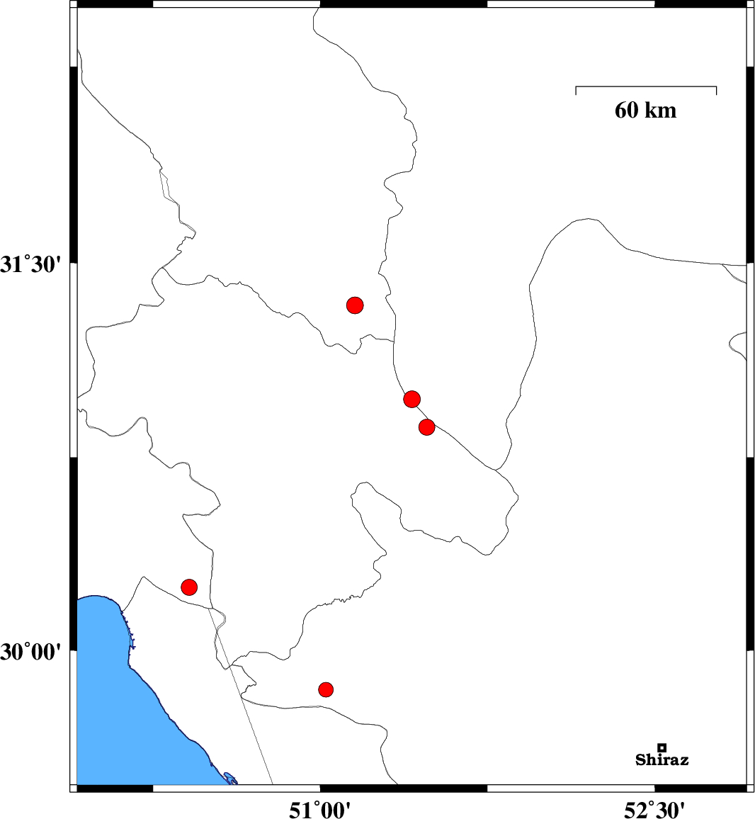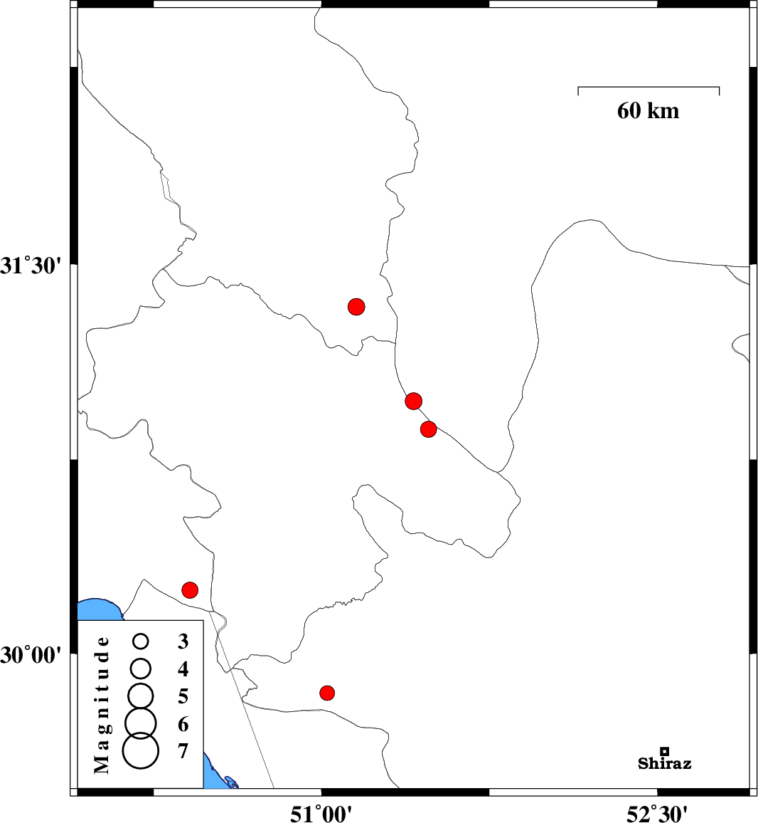 | 2021/03/16 | 10:20:58.2 | 13:50:58.2 | 30.975 | 51.411 | 12 | ML:3.4 | Esfahan Province, 13 km North of Sisakht | ||