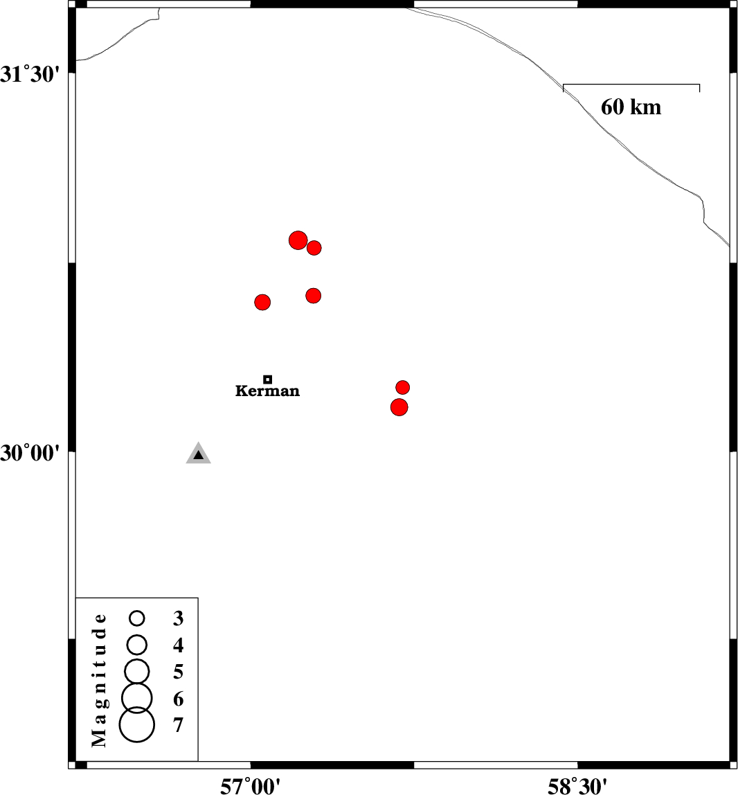 | 2021/02/27 | 02:37:13.0 | 06:07:13.0 | 30.594 | 57.054 | 12 | ML:3.2 | Kerman Province, 34 km North of Kerman | ||
