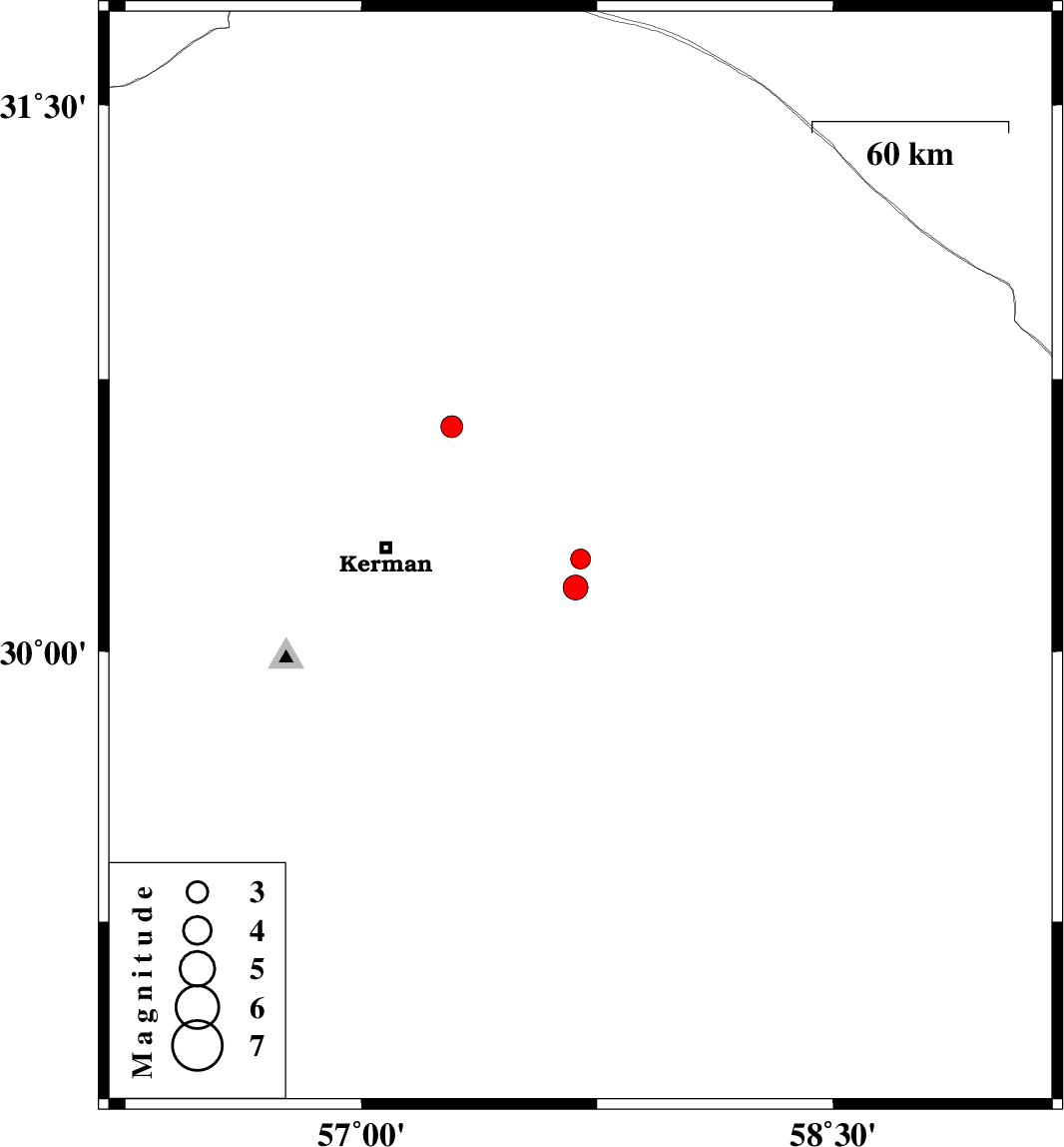 | 2021/03/14 | 13:12:53.4 | 16:42:53.4 | 30.62 | 57.288 | 16 | ML:3.1 | Kerman Province, 42 km North-East of Kerman | ||