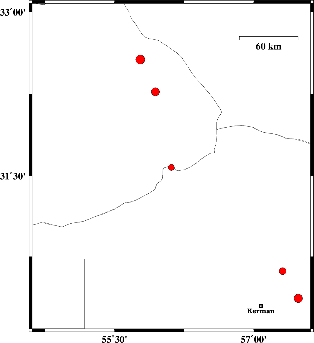 | 2024/01/10 | 09:45:43.8 | 13:15:43.8 | 30.36 | 57.481 | 12 | ML:4.1 | Kerman Province, 39 km -East of Kerman | ||