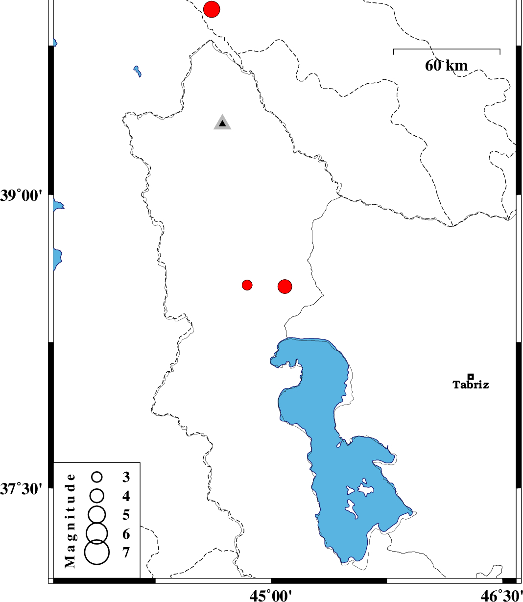 | 2021/03/11 | 05:46:27.5 | 09:16:27.5 | 38.533 | 45.088 | 18 | ML:4.1 | Azarbaijan Gharbi Province, 12 km -East of Khoy | ||
