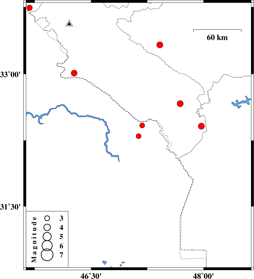| 2021/03/08 | 03:24:19.0 | 06:54:19.0 | 32.42 | 47.182 | 19 | ML:3.1 | Iraq, 31 km South of Dehloran | ||