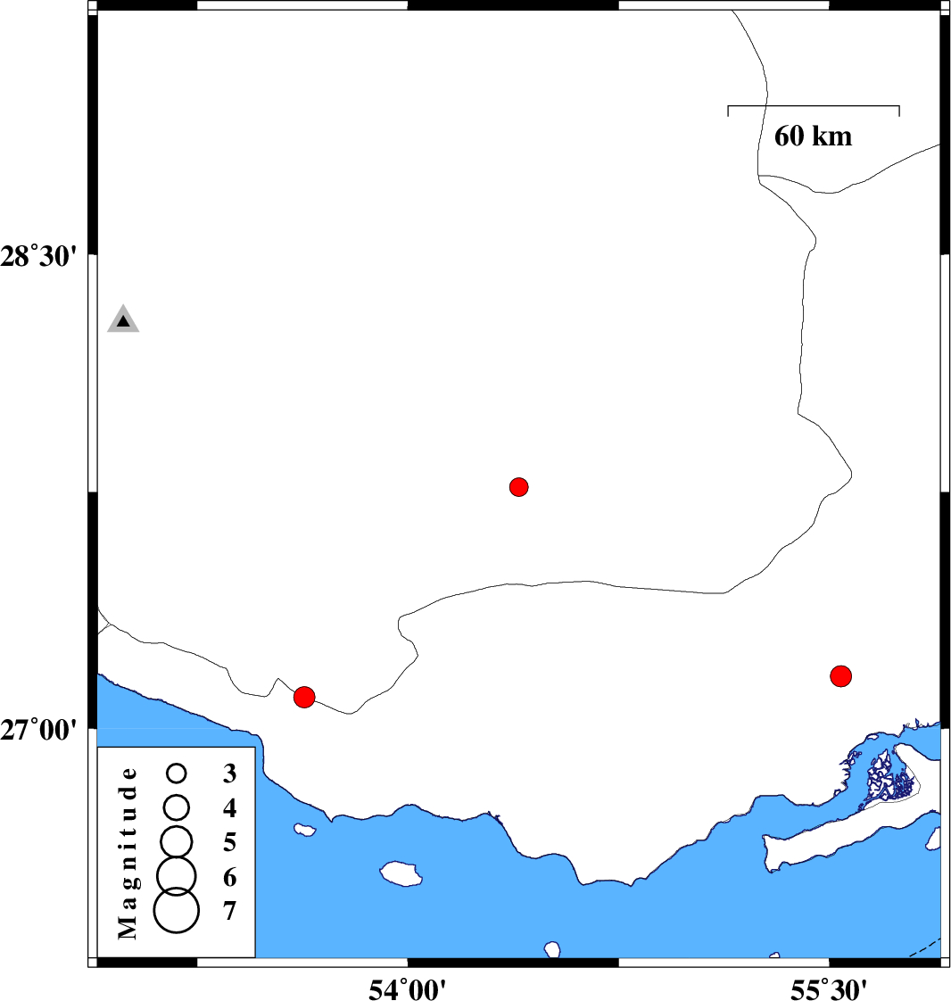 | 2021/02/13 | 12:12:17.2 | 15:42:17.2 | 27.766 | 54.395 | 12 | ML:3 | Fars Province, 11 km of Lar | ||