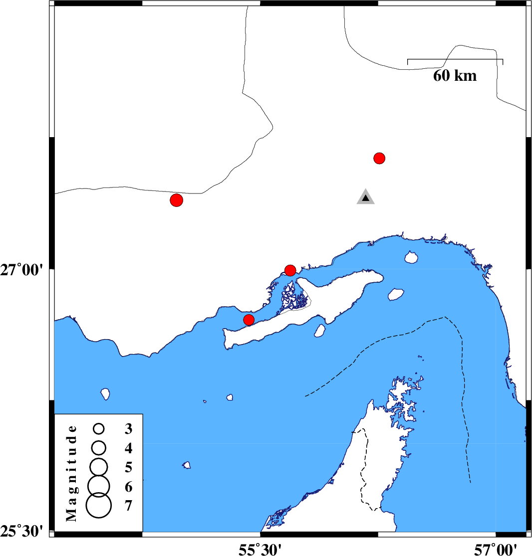| 2024/01/04 | 19:09:03.7 | 22:39:03.7 | 26.709 | 55.428 | 12 | ML:3.1 | Persian Gulf, 61 km North-East of Bandar-e lengeh |