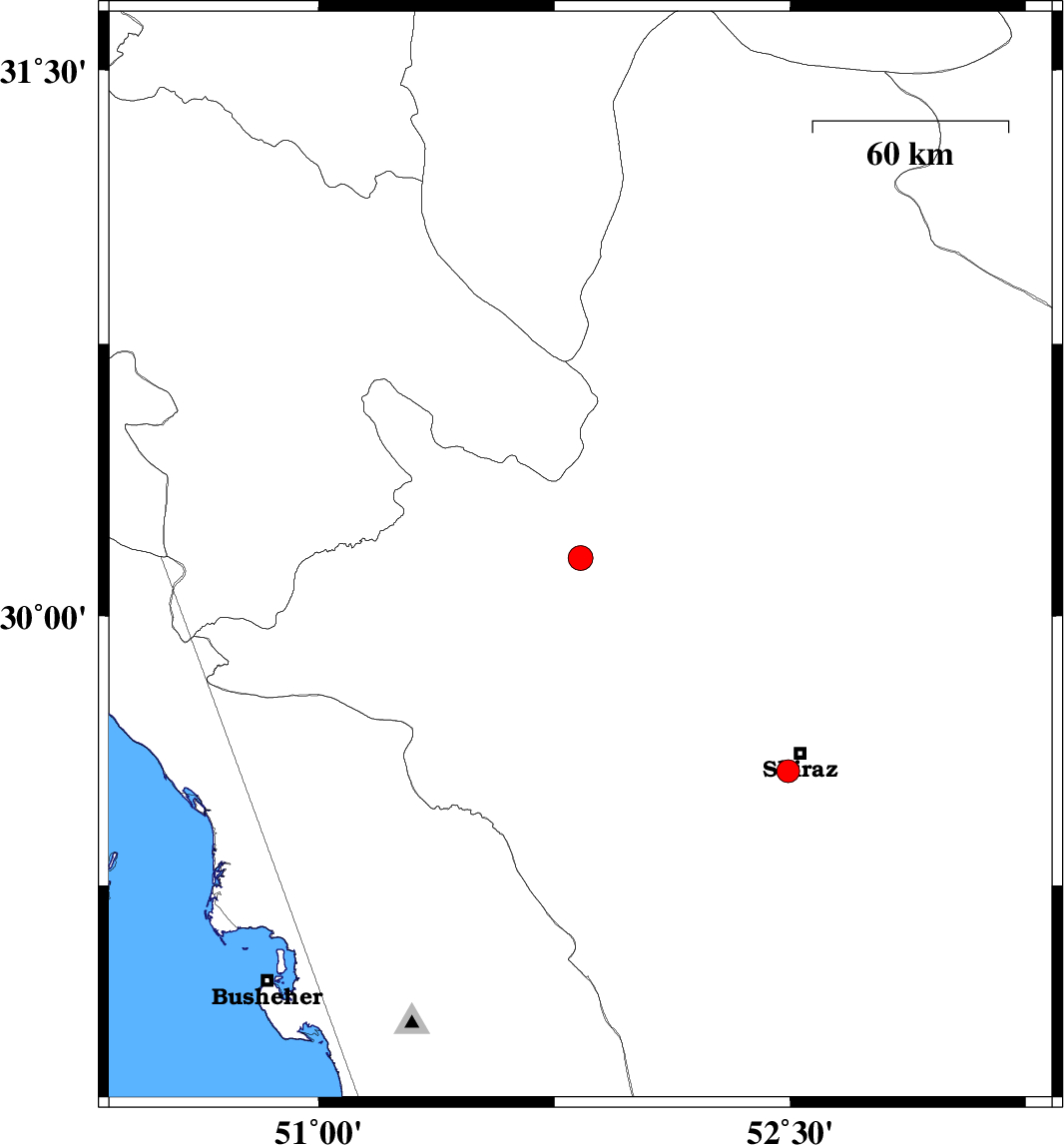 | 2024/01/31 | 03:29:54.8 | 06:59:54.8 | 29.569 | 52.493 | 8 | ML:3.3 | Fars Province, 7 km of Shiraz |