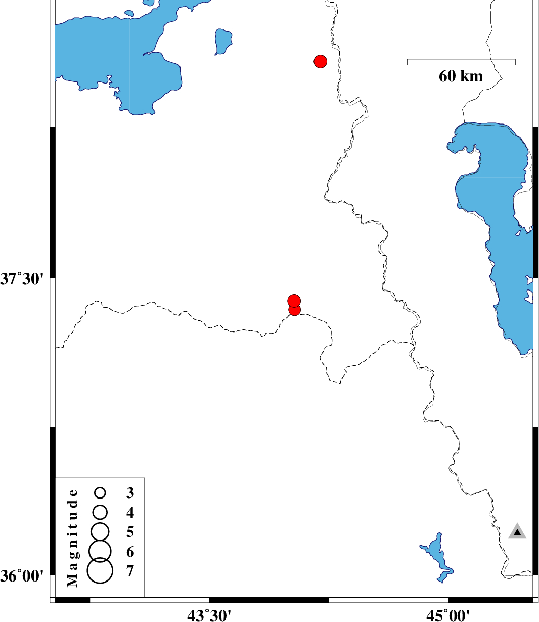 | 2024/01/24 | 02:15:25.2 | 05:45:25.2 | 37.34 | 44.035 | 12 | ML:3.4 | Turkey, 94 km South-West of Orumiyeh | ||