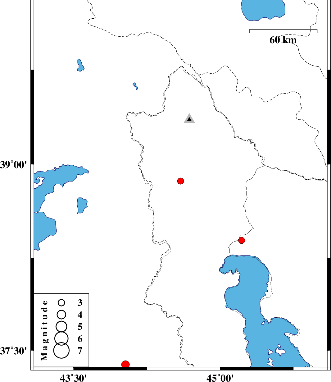 | 2024/02/06 | 01:19:37.5 | 04:49:37.5 | 38.39 | 45.219 | 12 | ML:3 | Azarbaijan Sharghi Province, 30 km South-East of Khoy | ||