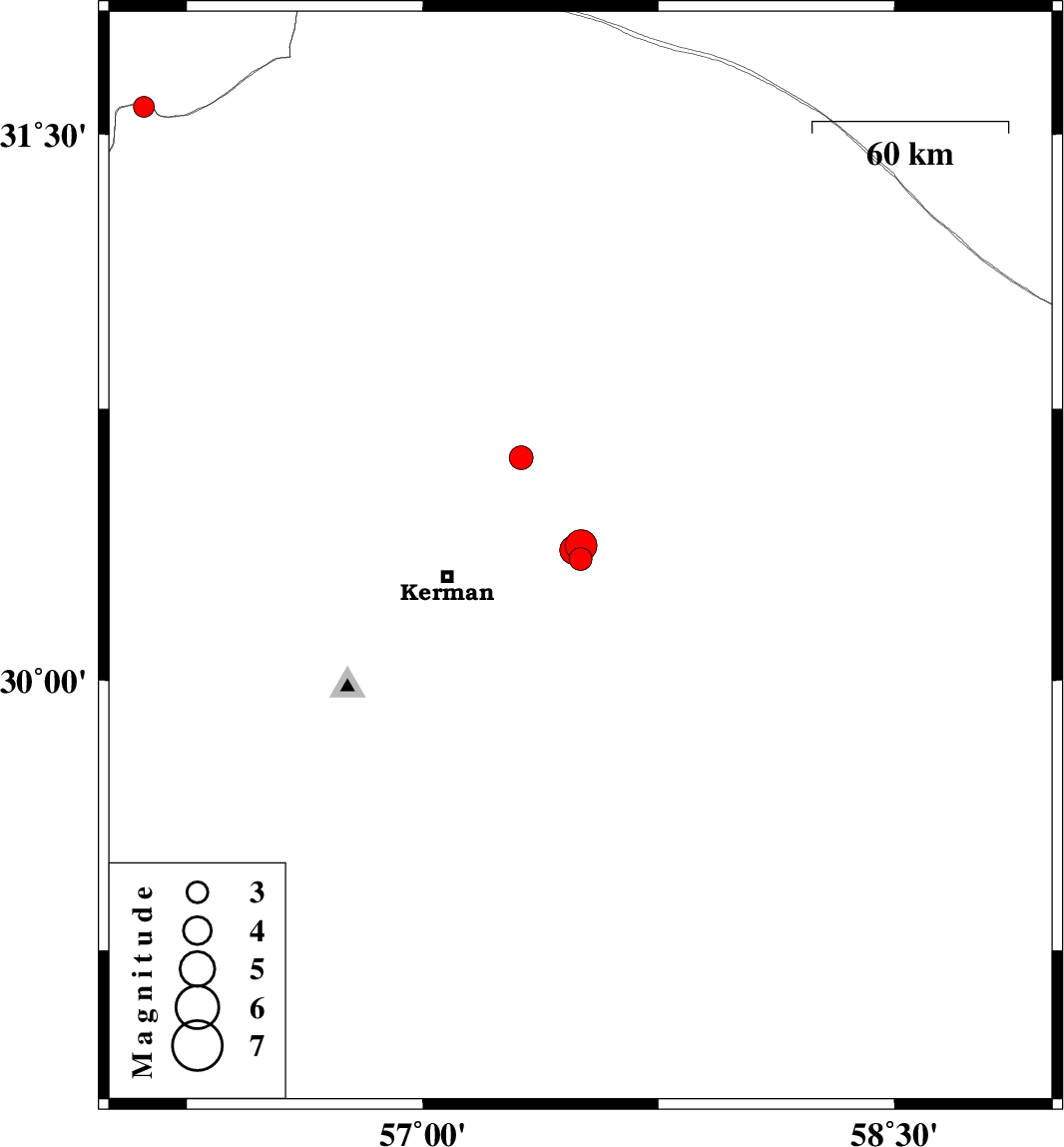 | 2024/01/18 | 19:51:30.8 | 23:21:30.8 | 30.615 | 57.314 | 12 | ML:3.4 | Kerman Province, 43 km North-East of Kerman | ||