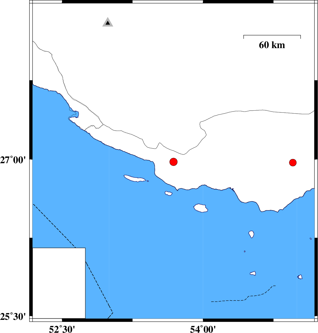 | 2024/02/04 | 01:52:06.2 | 05:22:06.2 | 26.968 | 54.956 | 10 | ML:3.4 | Hormozgan Province, 50 km North-East of Bandar-e lengeh |