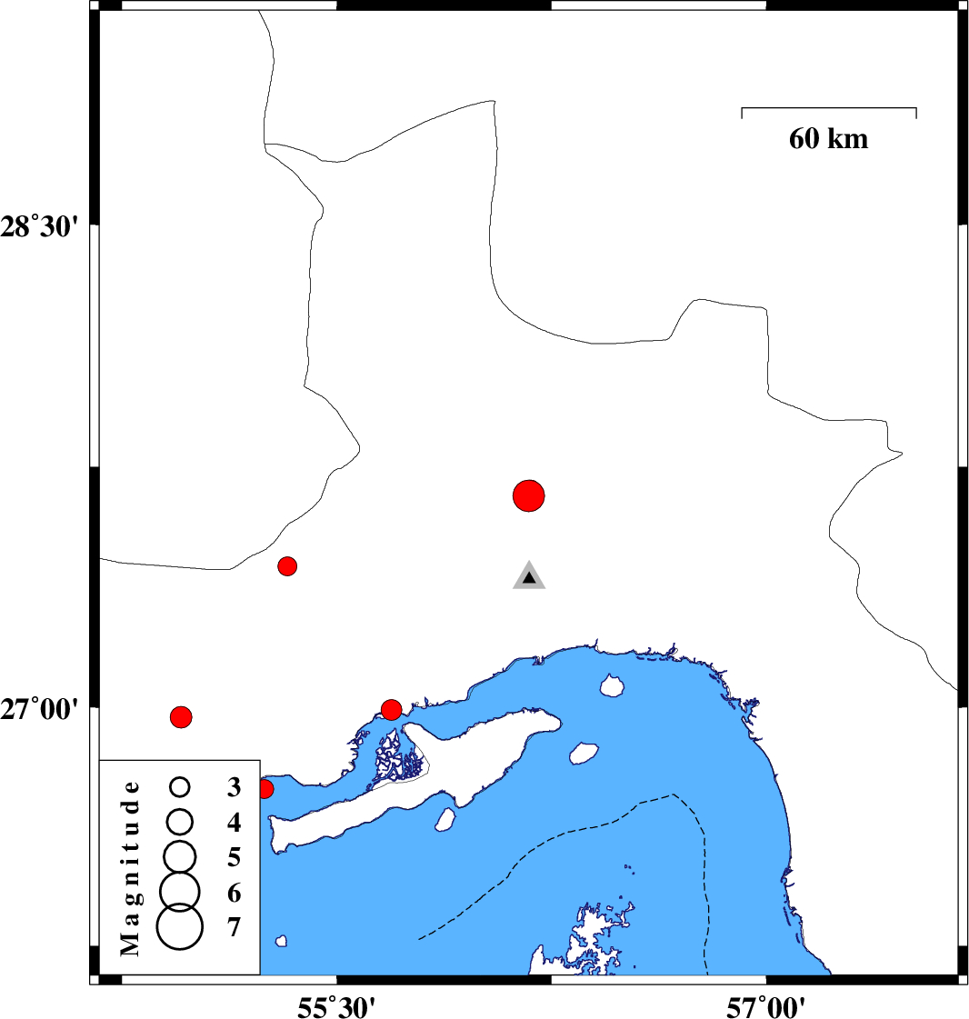 | 2024/02/11 | 20:57:07.0 | 00:27:07.0 | 26.744 | 55.246 | 12 | ML:3 | Persian Gulf, 46 km North-East of Bandar-e lengeh | ||