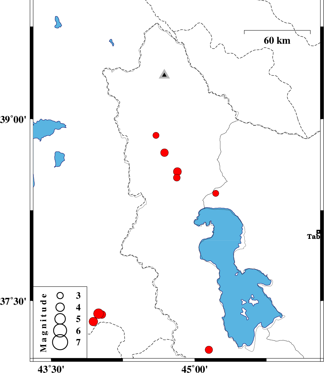 2024/02/11 | 04:36:30.7 | 08:06:30.7 | 37.392 | 43.996 | 12 | ML:4.7 | Turkey, 96 km South-West of Orumiyeh | ||