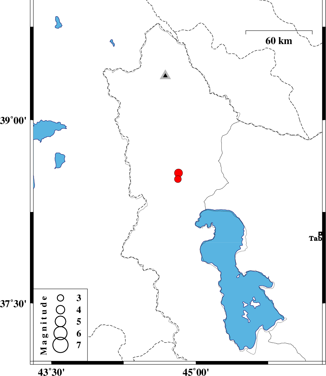 | 2024/02/20 | 19:44:11.2 | 23:14:11.2 | 38.569 | 44.82 | 12 | ML:3.8 | Azarbaijan Gharbi Province, 11 km -West of Khoy |
