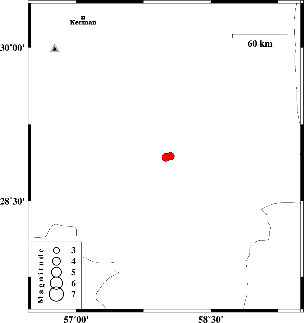 | 2024/03/07 | 17:27:03.9 | 20:57:03.9 | 28.939 | 58.05 | 8 | ML:3.9 | Kerman Province, 35 km South-West of Bam |