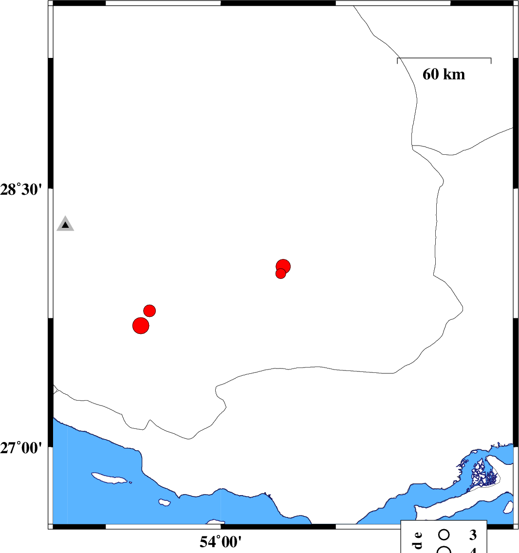 2024/03/23 19:57:39.7 23:27:39.7 28.04954.40712 ML:4.3 Fars Province, 42 km North of Lar