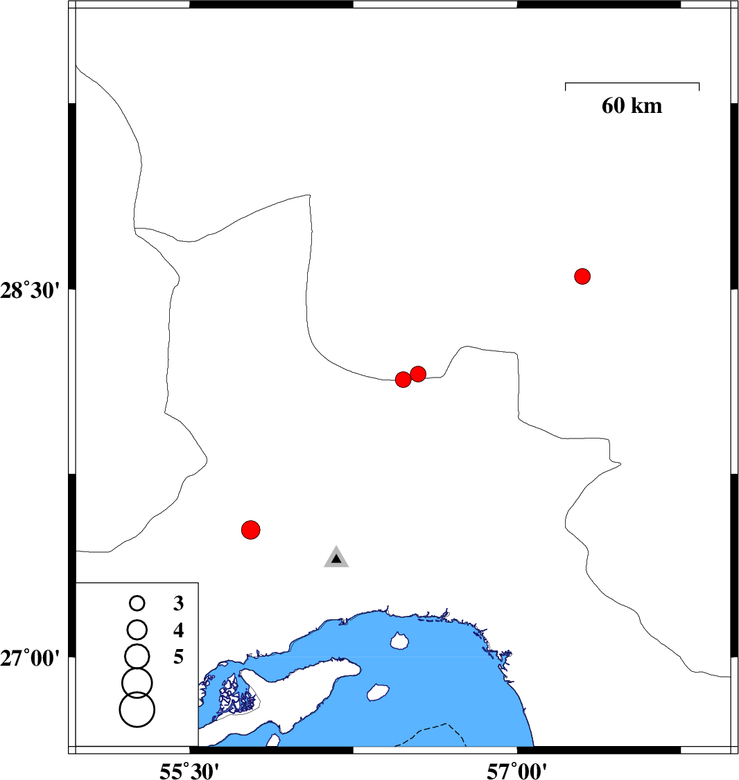2024/03/24 00:12:19.9 03:42:19.9 27.52155.7812 ML:3.8 Hormozgan Province, 62 km North-West of Bandar-e abbas