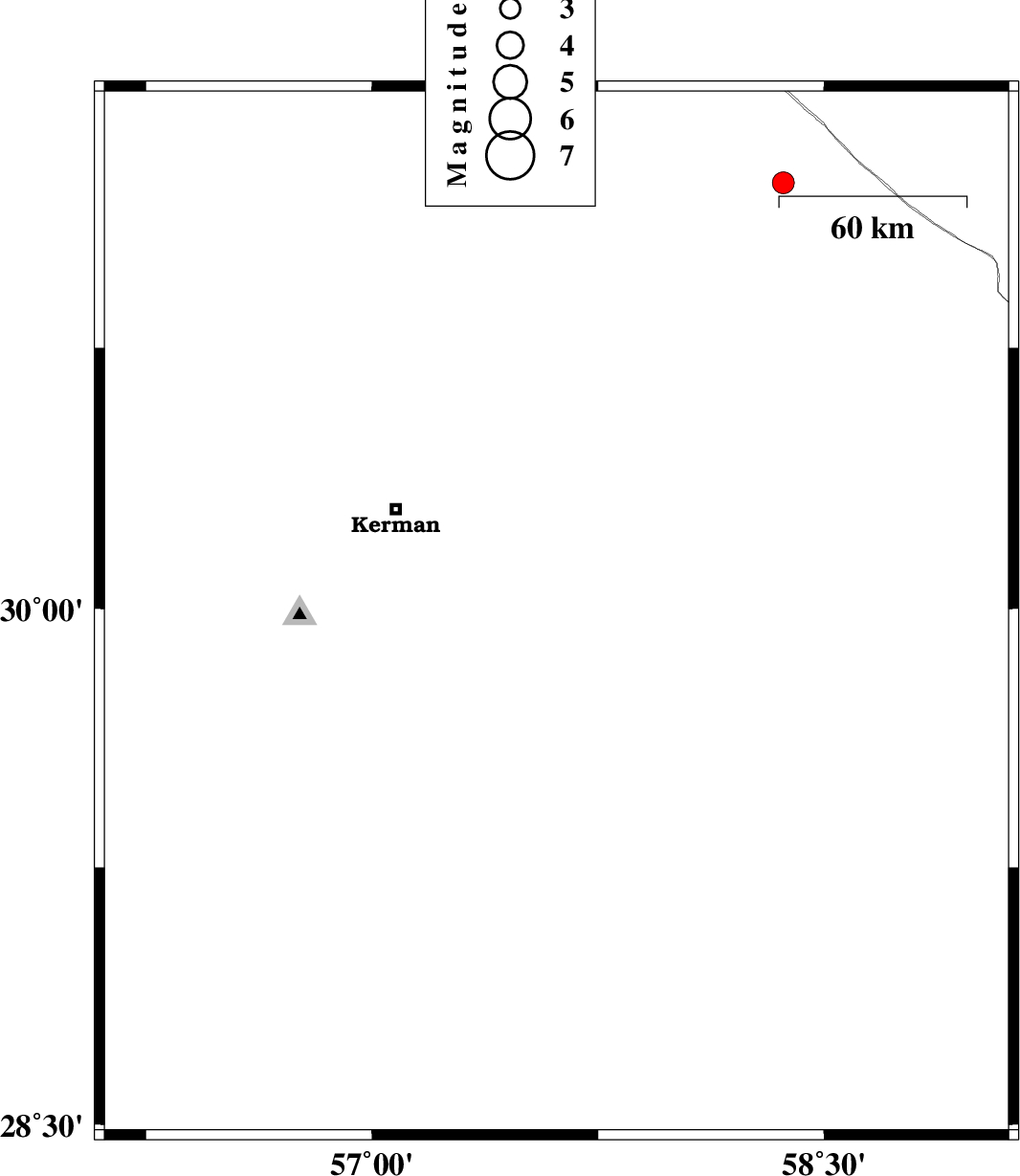 | 2024/03/26 | 07:04:33.2 | 10:34:33.2 | 29.984 | 57.612 | 8 | ML:3 | Kerman Province, 61 km South-East of Kerman | ||