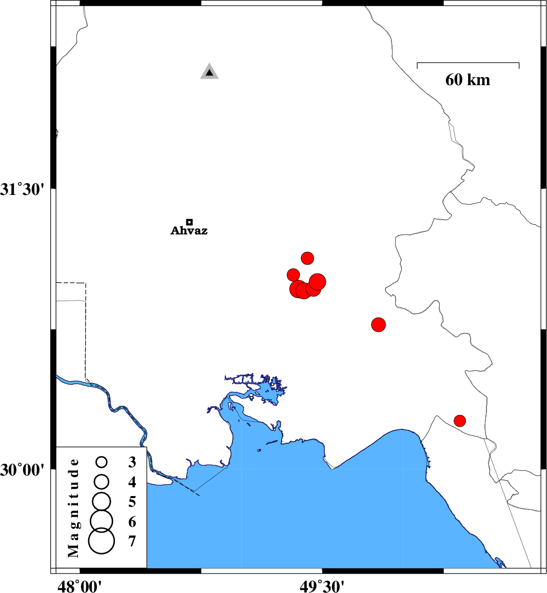| 2024/04/05 | 08:45:53.1 | 12:15:53.1 | 30.965 | 49.352 | 12 | ML:5 | Khoozestan Province, 41 km North-West of Omidiyeh | ||