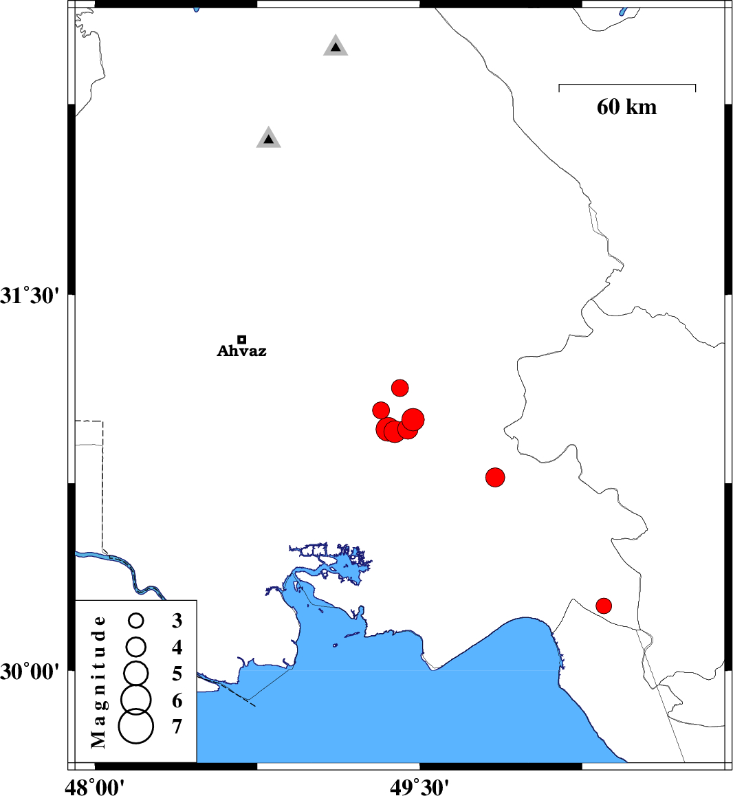 | 2024/04/05 | 08:45:53.1 | 12:15:53.1 | 30.965 | 49.352 | 12 | ML:5 | Khoozestan Province, 41 km North-West of Omidiyeh | ||