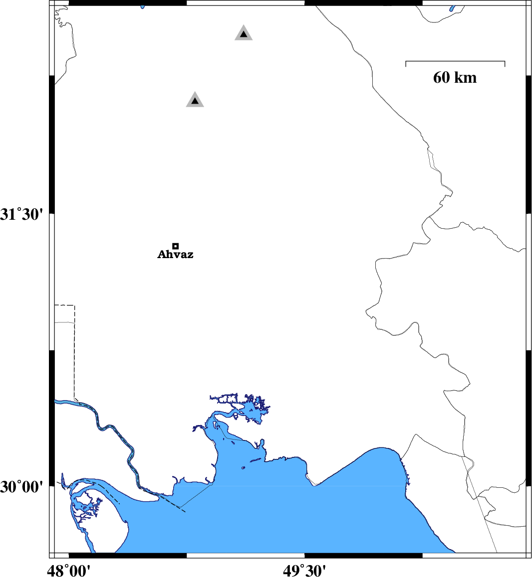 Map Region : lat:29.629-32.629  lon:47.908-50.908