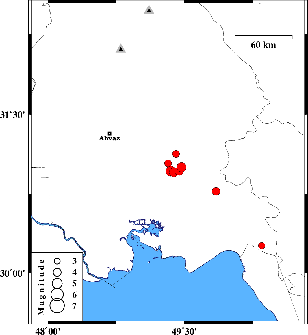 | 2024/04/05 | 08:45:53.1 | 12:15:53.1 | 30.965 | 49.352 | 12 | ML:5 | Khoozestan Province, 41 km North-West of Omidiyeh | ||