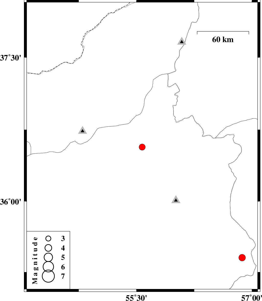 | 2024/04/05 | 02:49:26.2 | 06:19:26.2 | 36.569 | 55.574 | 12 | ML:3.7 | Semnan Province, 57 km North-East of Shahrud | ||