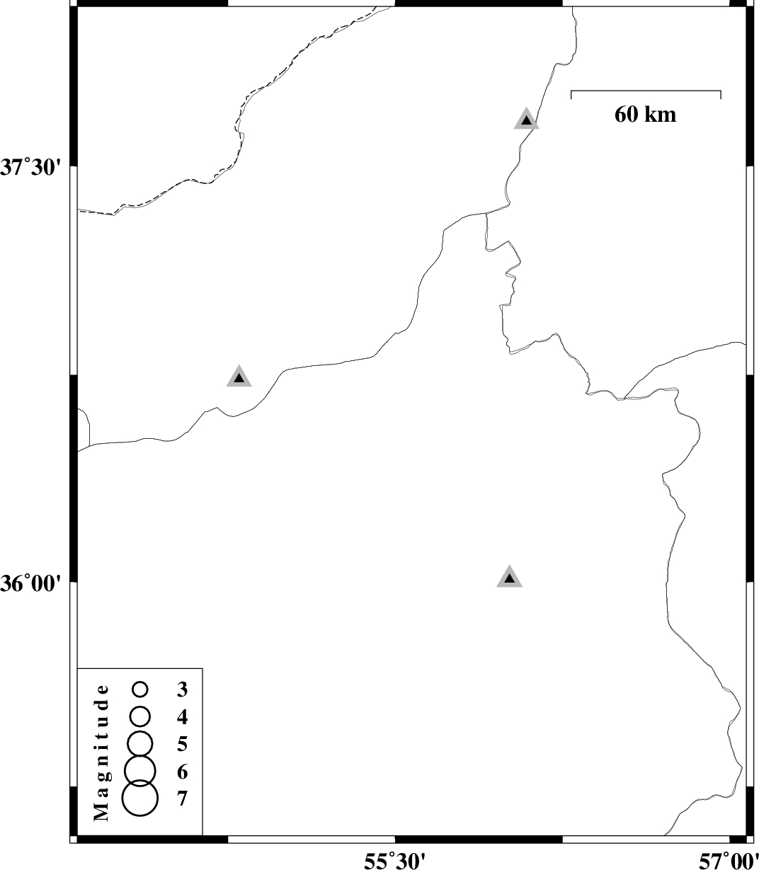 | 2024/04/05 | 02:49:26.2 | 06:19:26.2 | 36.569 | 55.574 | 12 | ML:3.7 | Semnan Province, 57 km North-East of Shahrud |