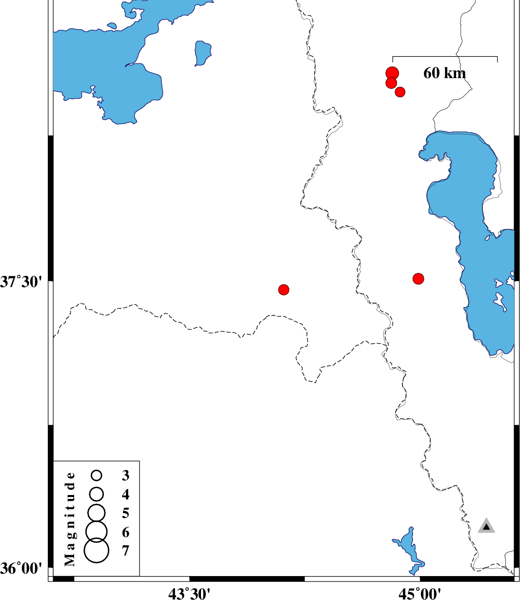| 2024/03/19 | 16:31:32.0 | 20:01:32.0 | 37.454 | 44.113 | 10 | ML:3.1 | Turkey, 85 km -West of Orumiyeh | ||