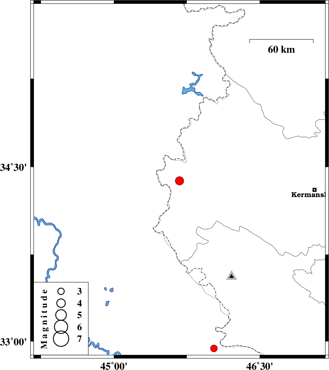 | 2024/04/14 | 08:13:55.6 | 11:43:55.6 | 34.381 | 45.675 | 10 | ML:3.9 | Kermanshah Province, 17 km South of Qasr-E-Shirin | ||