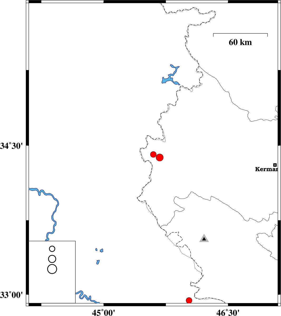 2024/04/14 | 08:13:55.6 | 11:43:55.6 | 34.381 | 45.675 | 10 | ML:3.9 | Kermanshah Province, 17 km South of Qasr-E-Shirin | ||