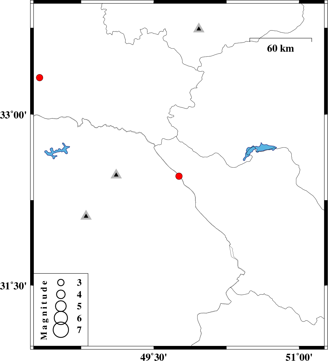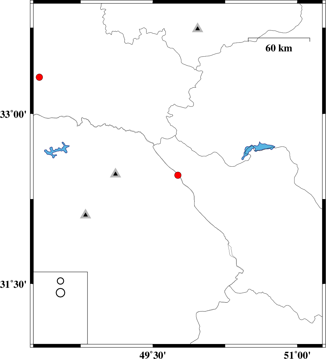 | 2024/04/21 | 14:17:19.3 | 17:47:19.3 | 33.319 | 48.322 | 12 | ML:3.1 | Lorestan Province, 19 km South of Khorramabad |