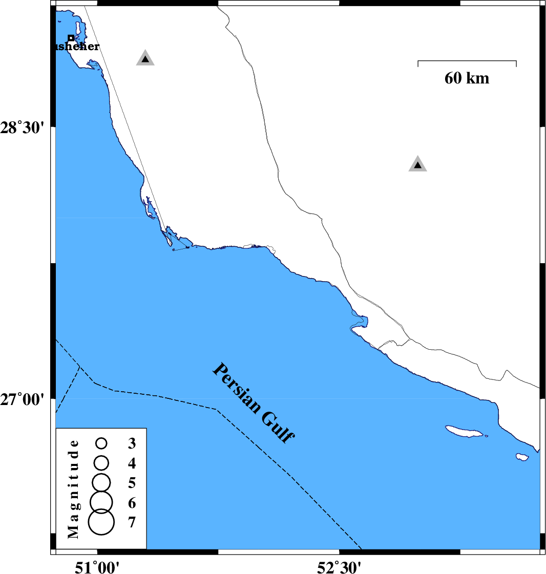 | 2024/04/24 | 09:34:00.5 | 13:04:00.5 | 27.661 | 52.243 | 12 | ML:3.9 | Persian Gulf, 20 km South of Jam |