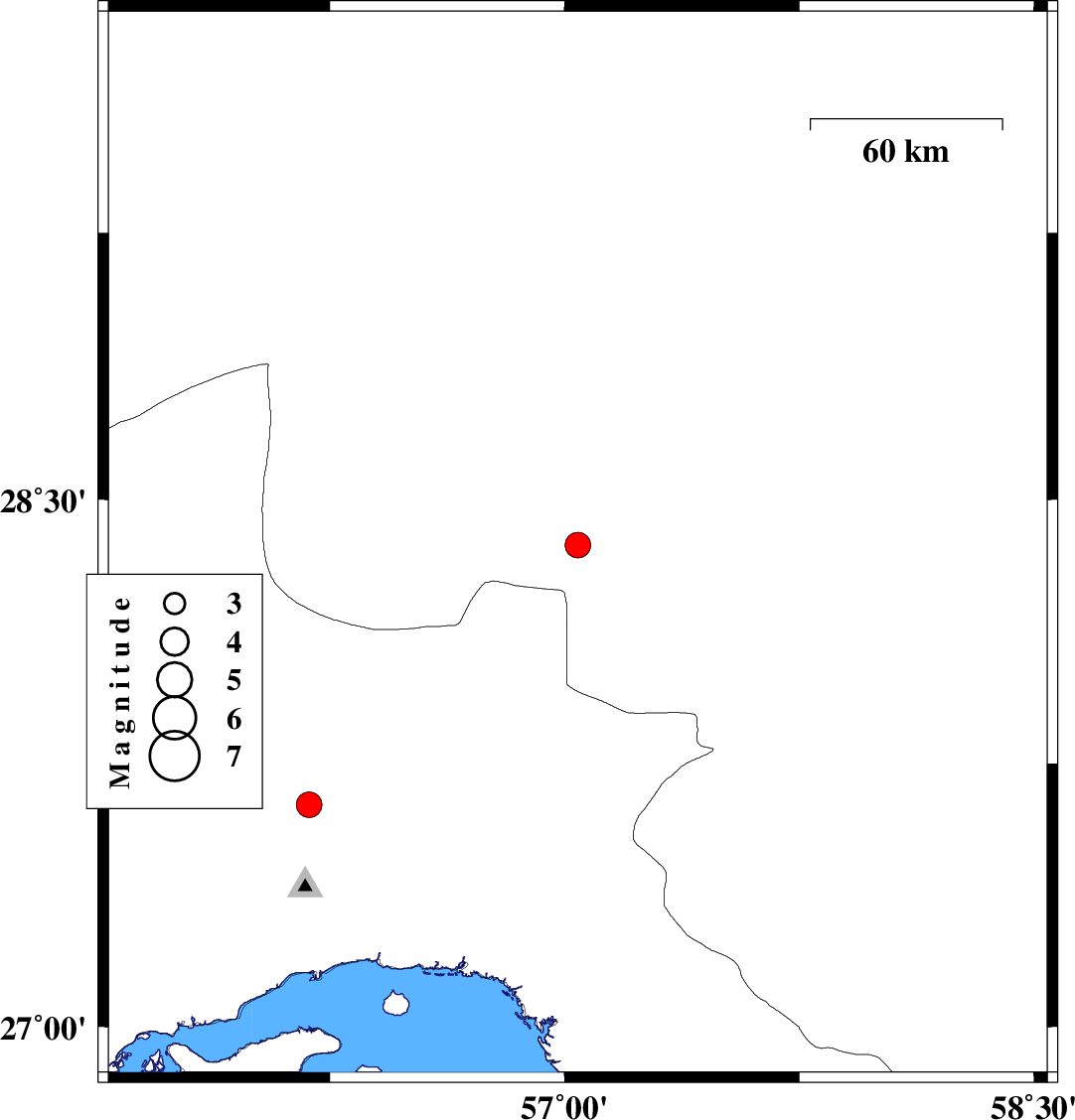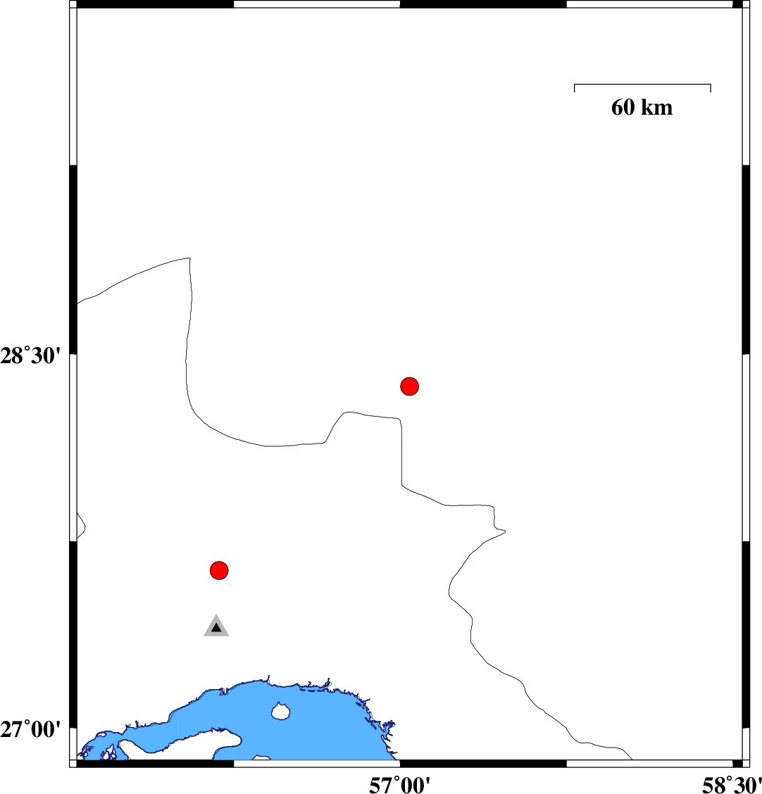 | 2024/04/27 | 22:52:13.2 | 02:22:13.2 | 28.37 | 57.042 | 10 | ML:3.6 | Kerman Province, 76 km South-West of Jiroft | ||
