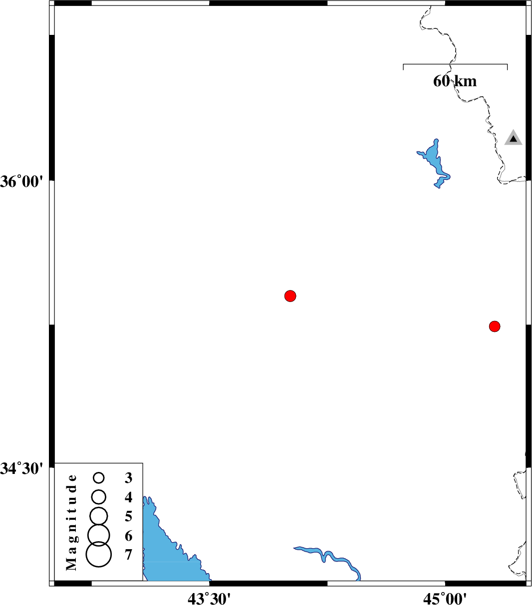 | 2024/04/27 | 00:35:06.8 | 04:05:06.8 | 35.241 | 45.315 | 9 | ML:3.1 | Iraq, 37 km South-West of Sulaymaniyah |
