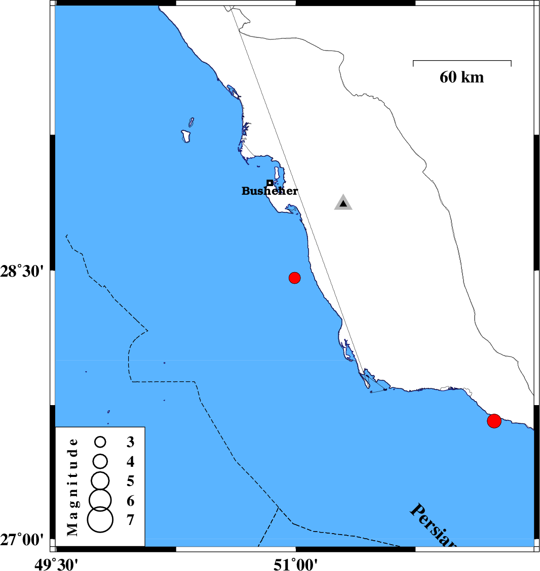 | 2024/04/30 | 04:09:33.7 | 07:39:33.7 | 28.458 | 50.992 | 12 | ML:3.3 | Persian Gulf, 43 km South-West of Khormog | ||