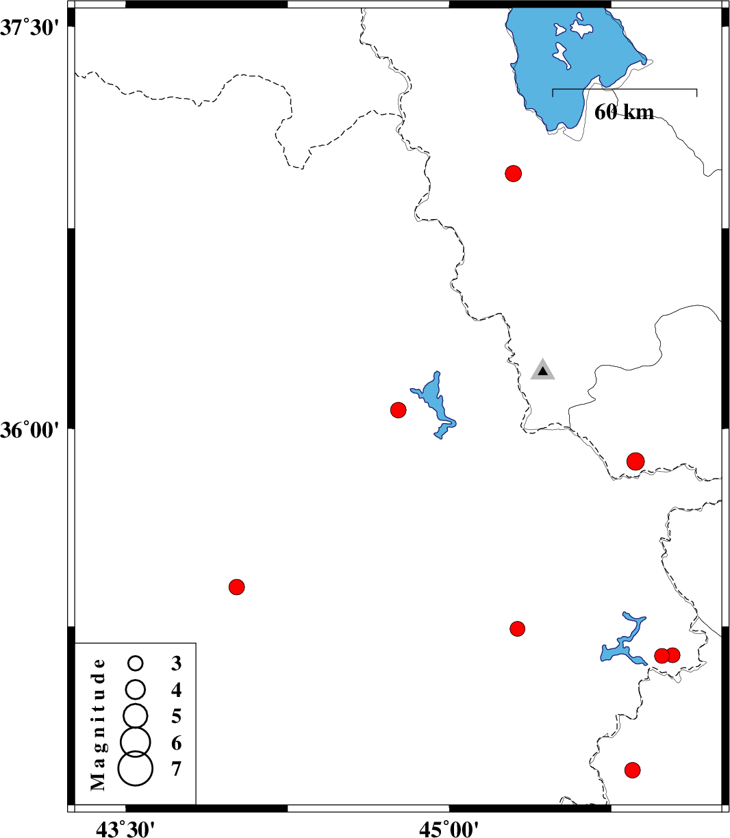 2024/05/03 | 19:21:35.8 | 22:51:35.8 | 36.069 | 44.763 | 12 | ML:3.2 | Iraq, 64 km -West of Sardasht | ||