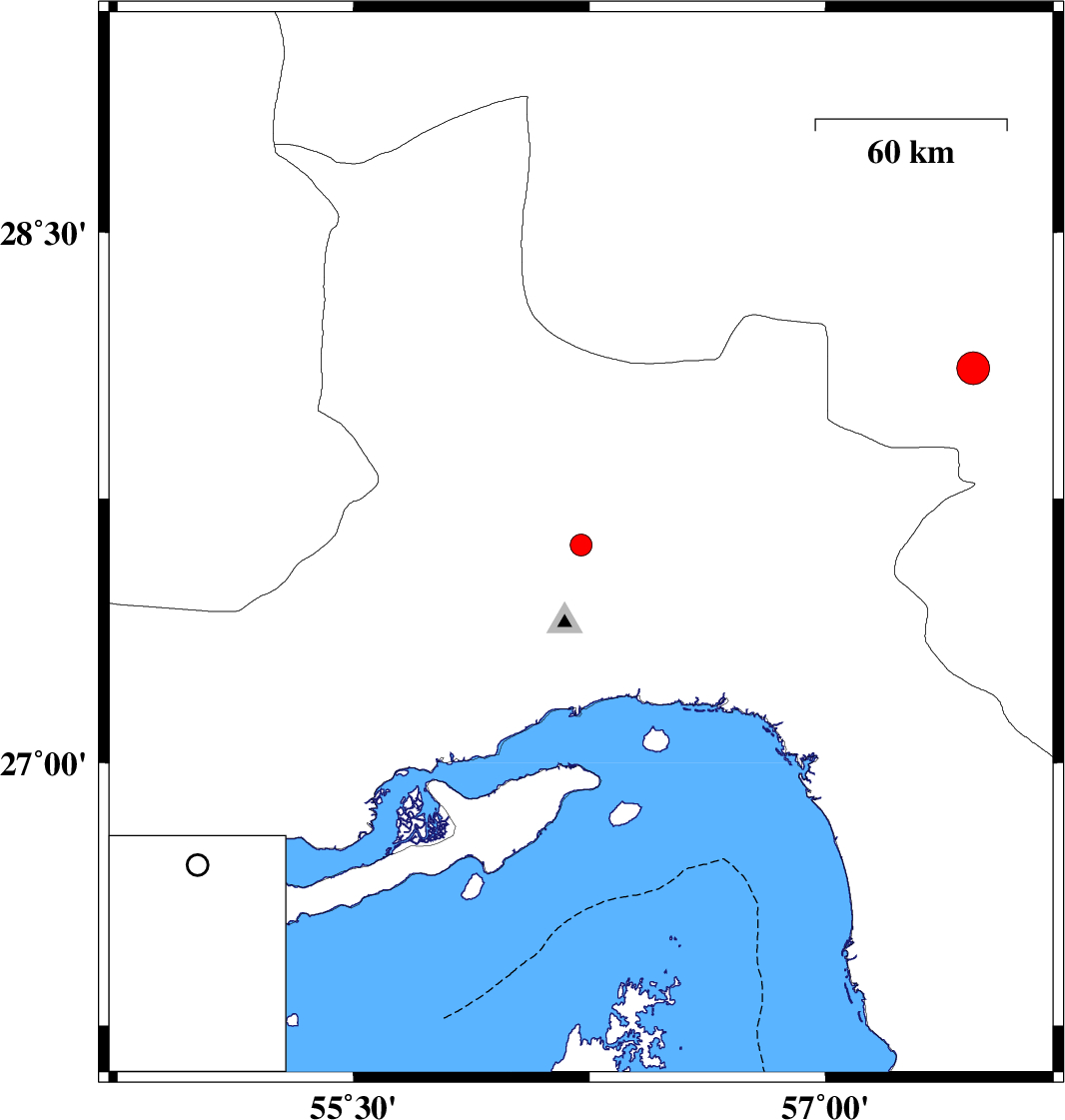 | 2024/05/02 | 04:23:45.8 | 07:53:45.8 | 28.118 | 57.47 | 10 | ML:4.6 | Kerman Province, 29 km North-West of Kahnuj |