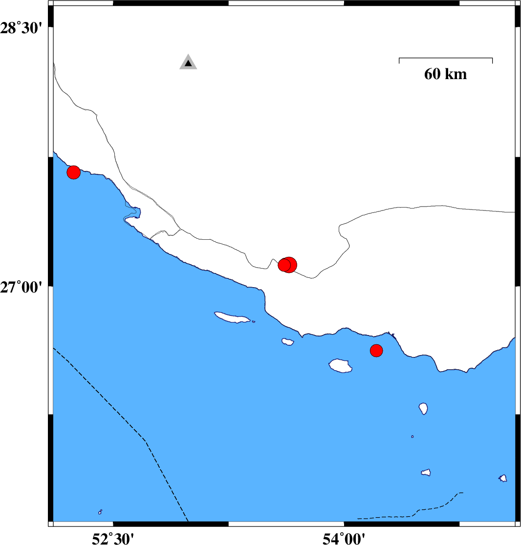 2024/04/24 | 09:34:00.5 | 13:04:00.5 | 27.661 | 52.243 | 12 | ML:3.9 | Persian Gulf, 20 km South of Jam | ||