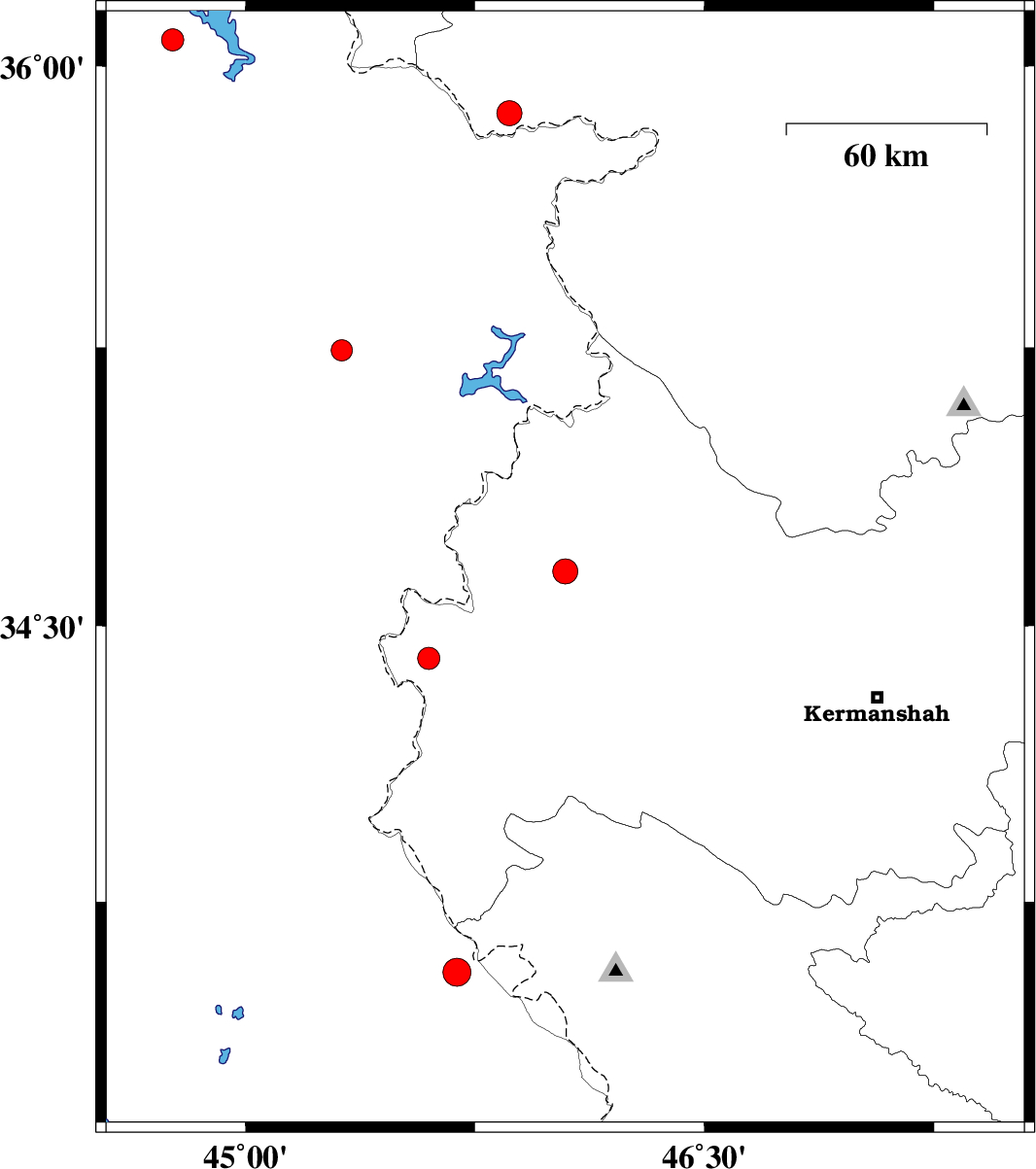 2024/05/15 | 07:26:02.8 | 10:56:02.8 | 34.647 | 46.045 | 12 | ML:3.7 | Kermanshah Province, 23 km South-East of Tazehabad | ||