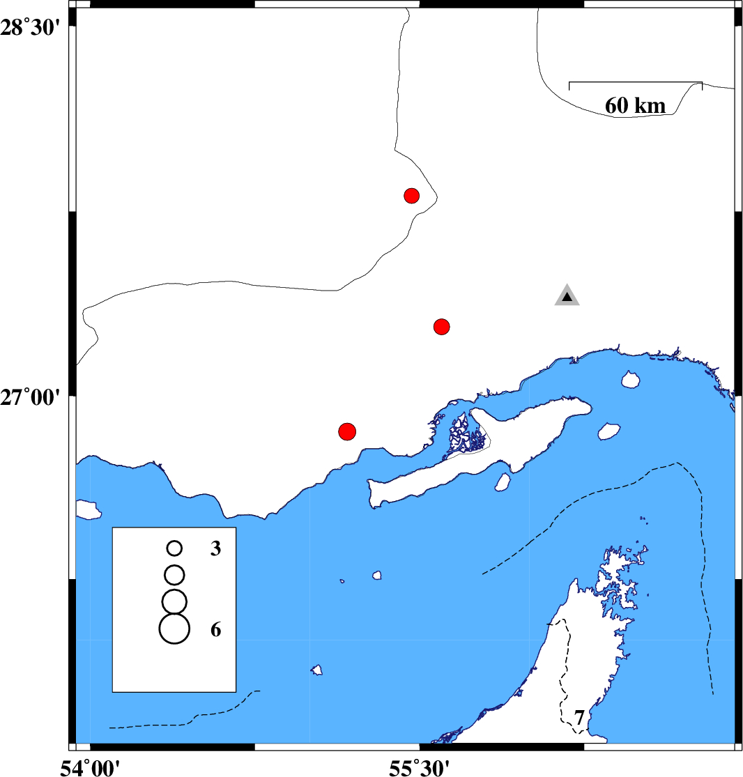 2024/05/19 | 14:39:21.2 | 18:09:21.2 | 27.074 | 55.435 | 12 | ML:3.2 | Hormozgan Province, 83 km North-West of Qeshm | ||