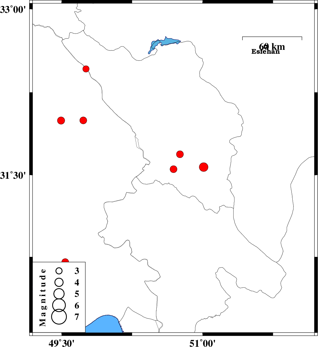 | 2024/04/23 | 05:10:38.9 | 08:40:38.9 | 32.461 | 49.76 | 12 | ML:3.1 | Khoozestan Province, 34 km -West of Chelgard |