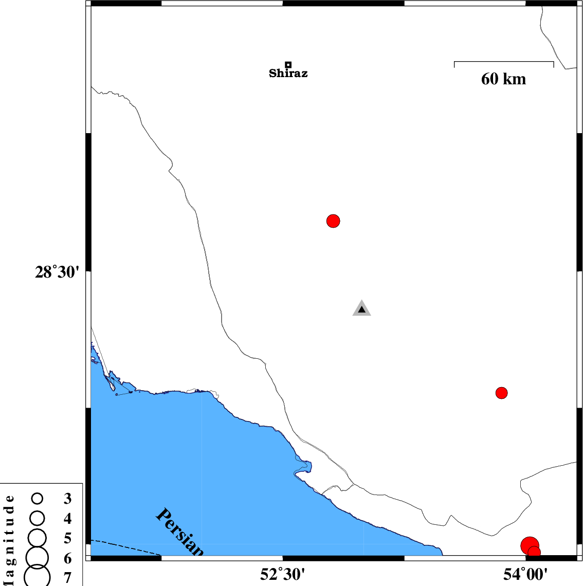 2024/05/23 | 17:07:31.1 | 20:37:31.1 | 27.168 | 53.679 | 16 | ML:5.1 | Fars Province, 54 km South-East of Lamerd |